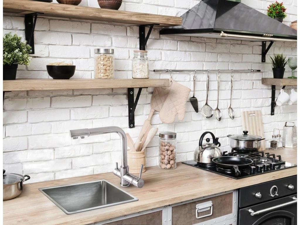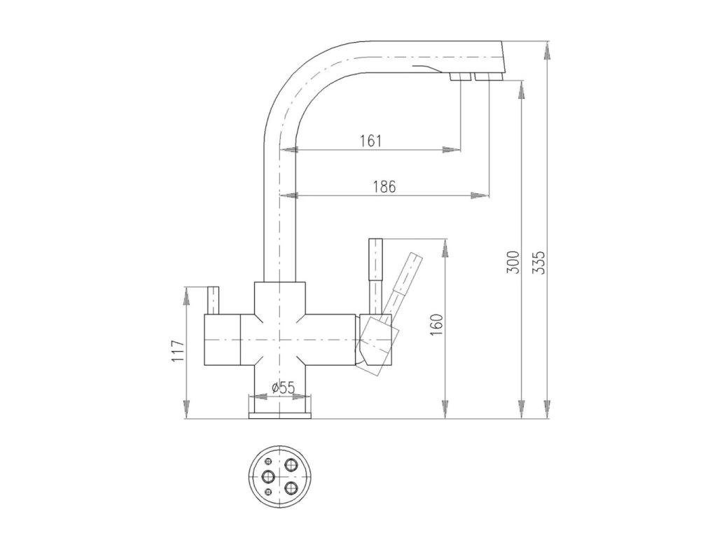 Vodovodní baterie dřezová stojánková s otočným ústím - pro dvě vody - pitnou a filtrovanou.